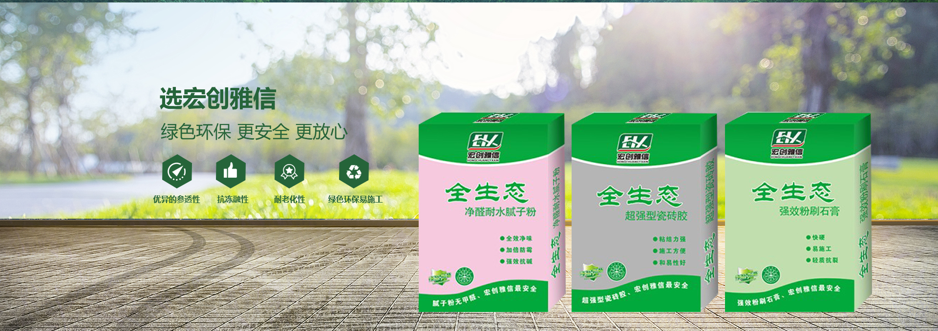 宏創雅信裝飾材料北京有限公司(威海分公司)是一家生產,研發,運輸,施工綜合性股份制企業,主要產品:快粘粉、嵌縫石膏、內外墻耐水膩子粉、內墻超細膩子粉、高強石膏、粉刷石膏、瓷磚粘接劑、填縫劑、內外墻防水涂料、108膠、聚合物粘接砂漿、聚合物抗裂抹面砂漿、灰鈣、重質碳酸鈣、砌筑砂漿、膠粉聚苯顆粒、浮雕骨料、玻化微珠保溫砂漿、FTC相變節能保溫砂漿、SF增水保溫砂漿、等產品。